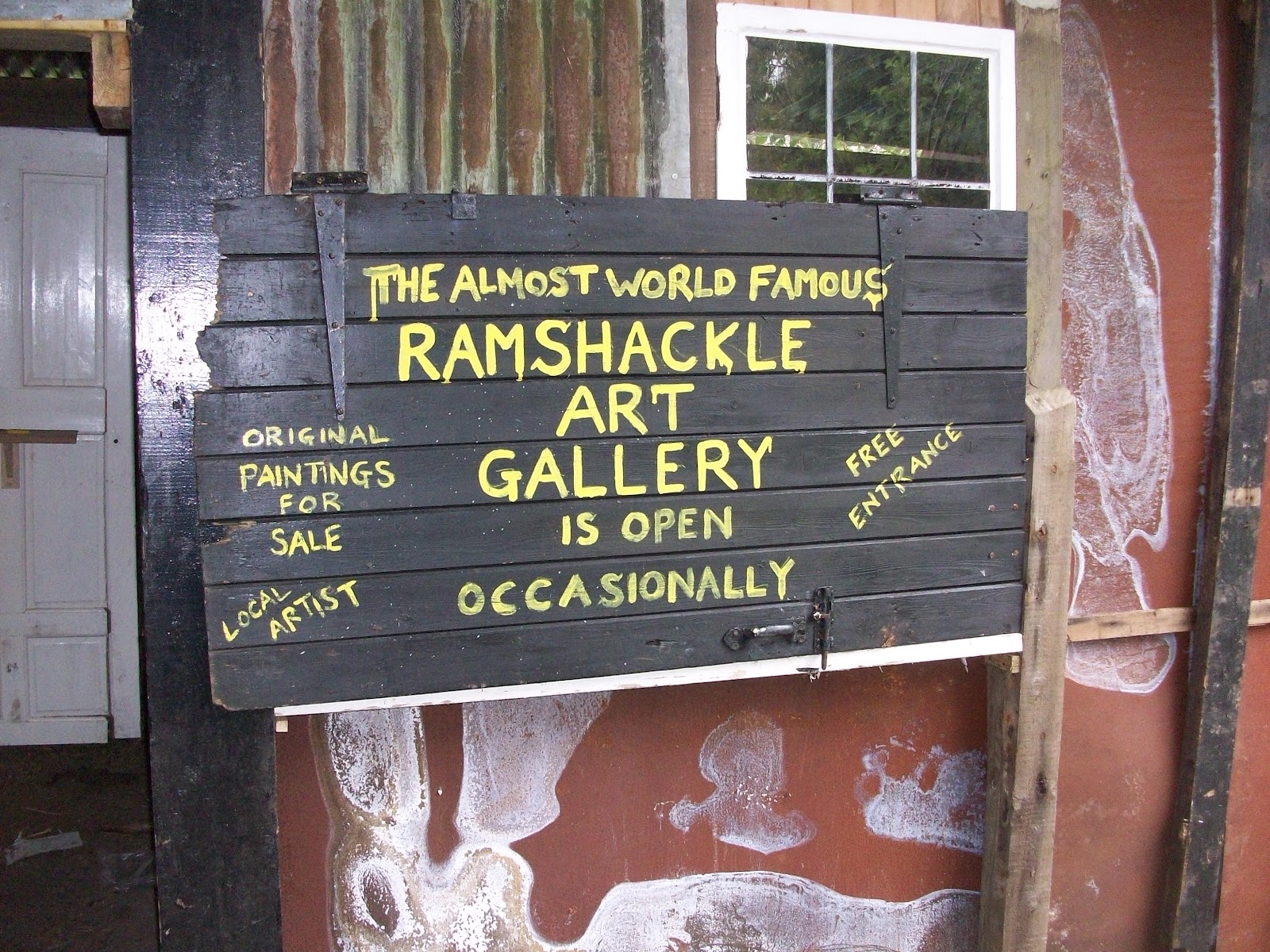 Another problem has been in the actual construction. Thing is you see, I am a fairly competent craftsman. I actually, in the ramshackle construction, have to force myself not to do things correctly. Sounds crazy I know, but if I make it properly it will not be ramshackle. And I think 'The Ramshackle Art Gallery' sounds better than 'The Properly Made Art Gallery'. Although having written that down for the first time, it does have a nice ring to it and appeals to my sense of humour. But no, I am not changing it now. Besides have a look at this. I have made the sign for the entrance.